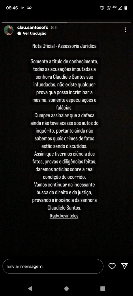 Na manhã desta sexta-feira (31), uma nota feita pela equipe jurídica de Claudiele Santos foi emitida e disse não passar de “especulações e falácias”, e que não há provas que comprovem que tenha tido qualquer crime ou envolvimento no caso da morte da ex-sinhazinha do Garantido, Djidja Cardoso.