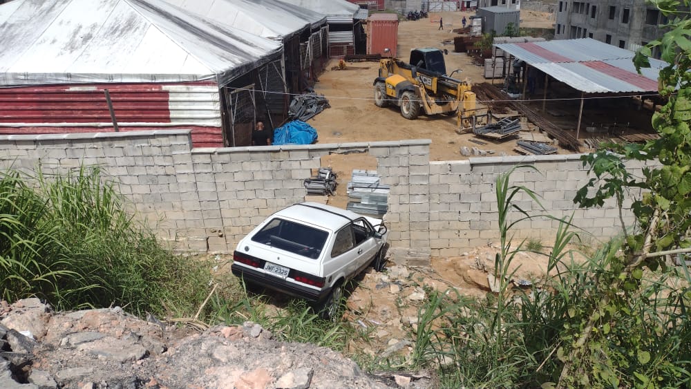 Desgovernado, o automóvel percorreu alguns metros e desceu o barranco. Ele só parou ao atingir o muro de uma obra.