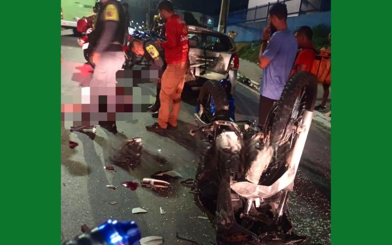 Um homem e uma mulher, identificados como Elias Latorre Ramos e Sabrina Uchoa, foram arremessados da motocicleta em que estavam, na madrugada desta segunda-feira (4), após colidirem com um carro parado na avenida Max Teixeira, Zona Norte de Manaus.