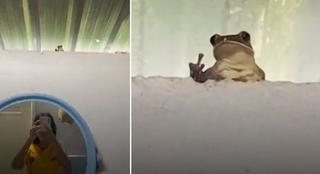 “Eu estava arrumando meu cabelo [no espelho do banheiro] quando vi o sapo lá. Ele não piscou. Apenas olhou para mim”, disse a jovem, que não teve o nome divulgado, em entrevista à agência de conteúdo Newsflare.