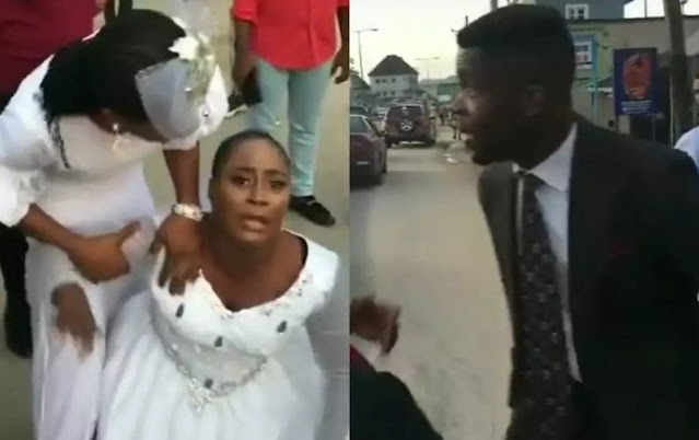 Chateada com a situação, o noivo não quis continuar a cerimônia. Um vídeo publicado nas redes sociais mostra a reação do homem, no registro também é possível ver a noiva de joelhos tentando se desculpar com ele.