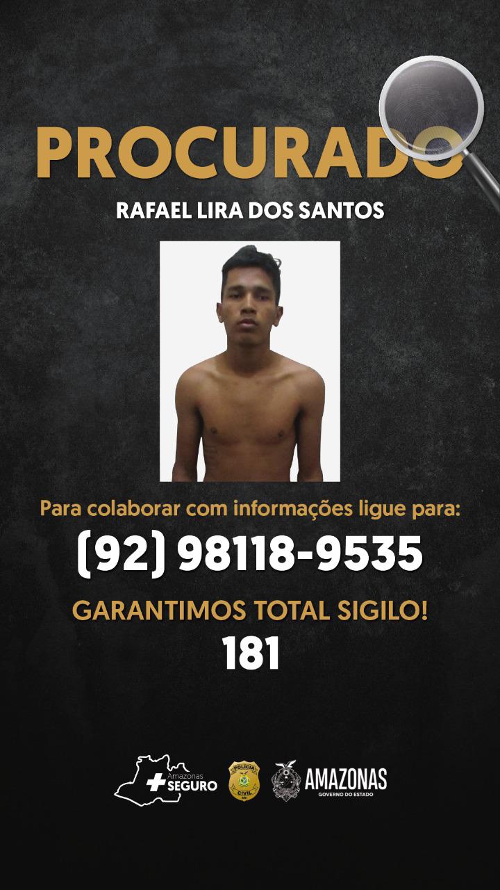 A polícia pede à população para que quaisquer informações sobre o paradeiro de Rafael sejam repassadas pelos telefones 92 98118-9535 ou pelo disque denúncia 181. A identificação do denunciante será mantida em sigilo.