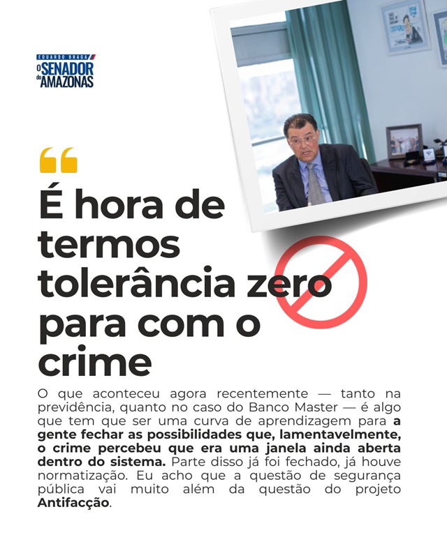 Com o título “O arquiteto de resultados”, a entrevista coloca o senador amazonense no centro das discussões sobre os rumos econômicos e institucionais do país. A revista aborda seu papel na regulamentação da reforma tributária, os desafios fiscais, a segurança pública e as perspectivas de crescimento do Brasil nos próximos anos.